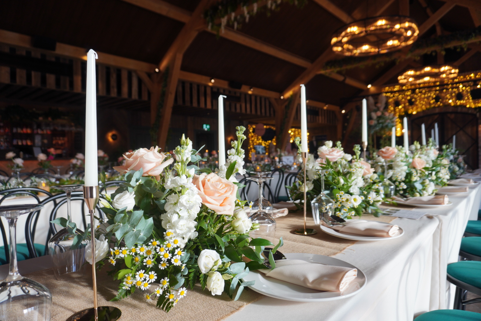 Now, the wedding feast in The Barn is where Drumhierny really gives you creative freedom. You can choose banquet-style long tables, a sweetheart table setup, or something more casual. It’s your day, your way. You can bring in your own décor to add your stamp, and with the bar located in the same space, it keeps the party in one place all night long.