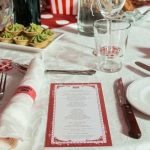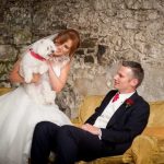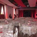 Gorilla Design came down and draped the hall. We went for red and white to match our vintage circus theme. We added in uplighters and a lighty uppy dance floor. We laid out all of the tables, chairs and table settings. It was gruelling and in hindsight a lot to take on a few days before walking down the aisle!