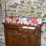 Each of the outhouses had to be transformed. The first shed was a replica of the tailoring shop that Eoin’s granny used to have in her house. We found all of the original fixtures from the shop plus some bits and bobs in the attack. The second was a turf shed using the old style cuttings from the local bog. The final shed was a replica of Ev’s living room. She very kindly let us take out the sofa’s, coffee table, wireless and portraits of her parents. We created a living room just like your grannies which guests loved on the day. There was also a DIY candy station on the dresser.