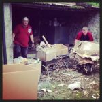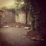 There is a dance hall in her garden, which was built by her father and back in its time it was THE place to go for an oul dance and see the best show bands. Ev (Eoin’s granny) also got married there! The hall was in rack and ruin but still functional. In the yard there were out houses full of turf and general junk. The ground was covered in moss and overgrown weeds and to be fair, when you were walking through, you were pretty much taking your life in your own hands!