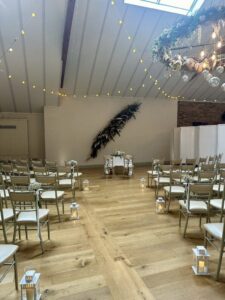 When I visited, I had the pleasure of being a little fly on the wall, watching a wedding setup in action. Most couples choose to get married on-site, and it’s easy to see why. The Barn is purpose-built for weddings, offering a blank canvas for each couple to make their own. All decor is included in the package, with everything from florals to Chiavari chairs covered. They work closely with Ríona from Rí Weddings and Events, their very own wedding décor specialist, who brings every couple’s vision to life. Imagine stunning ceiling installations with florals and disco balls (yes, disco balls!)—The Barn transforms seamlessly from ceremony to a beautiful dining space, creating the perfect flow for a wedding day.